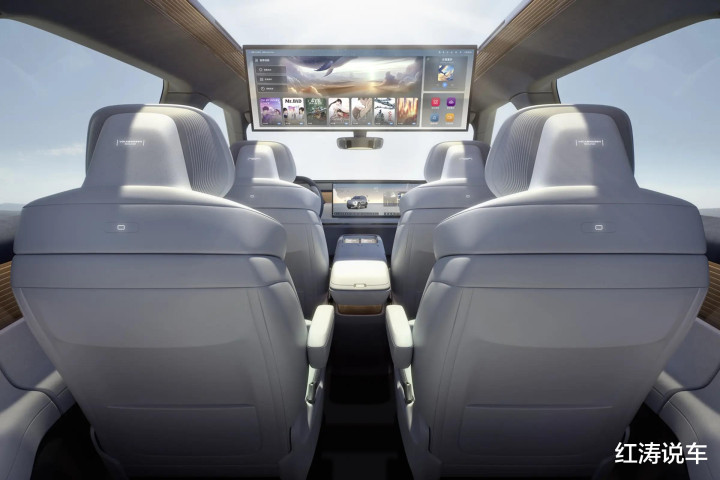 大众ID.ERA 9X的车内采用2+2+2的6座布局,每一排都将获得充足的乘坐空间,前排副驾驶设有“女王座椅”,具有电动腿托、加热、通风等功能,第二排配备“行政座椅”及吸顶屏,从中间通道进入到第三排也是比较方便的。