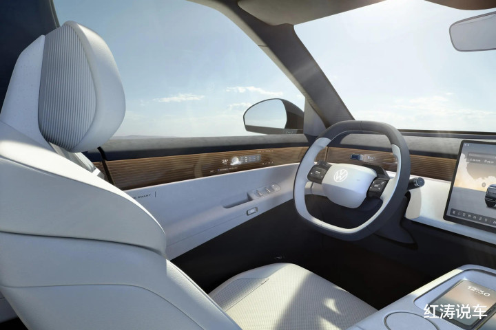 内饰方面,参考此前公布的官图,大众ID.ERA 9X的车内环抱座舱布局,中控台上没有实体按键,营造出极简风格,配备上下都是平底样式的多功能方向盘,悬浮式中控屏和副驾娱乐屏组成了一体式大屏,将配备智能光语系统、“多模态”交互系统、AI大模型语音助手等,副仪表台前端有手机无线充电面板,此外车门内侧位置可显示天气等信息。